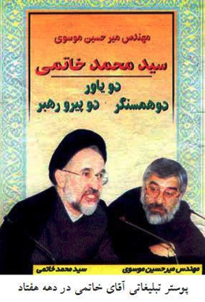 برگه بزرگ با ماژیک می نویسیم: "در حمایت زِ امامم علی خامنه ای. می شوم